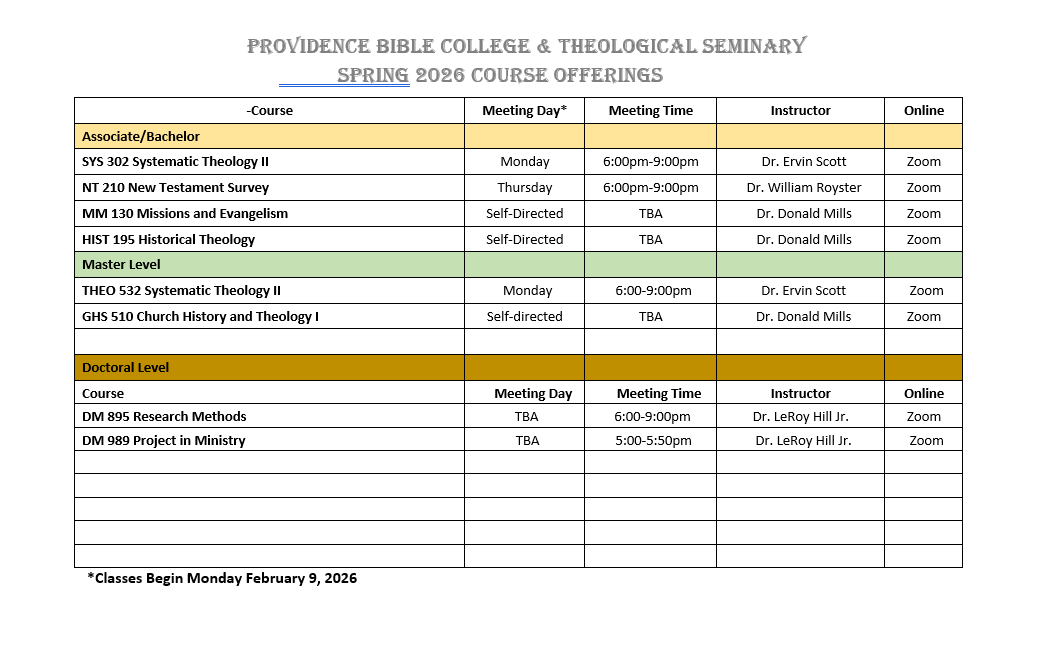 Welcome to your home base at Providence Bible College and Theological Seminary! This section is designed especially for our currently enrolled students—your one-stop destination for the key resources, updates, and tools you need to succeed throughout your academic journey. In addition to the latest news and announcements are links to the Academic Calendar, College Catalog, Registration Information, and Tuition & Fees.
